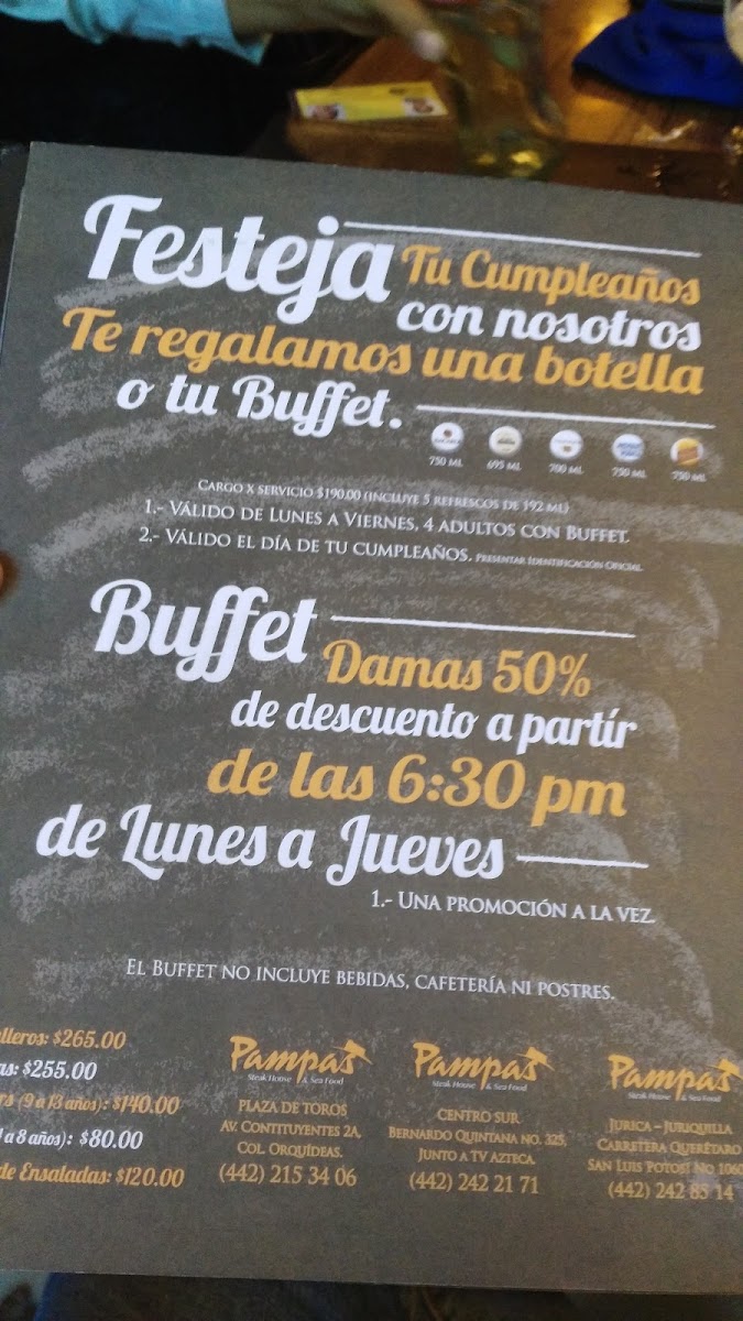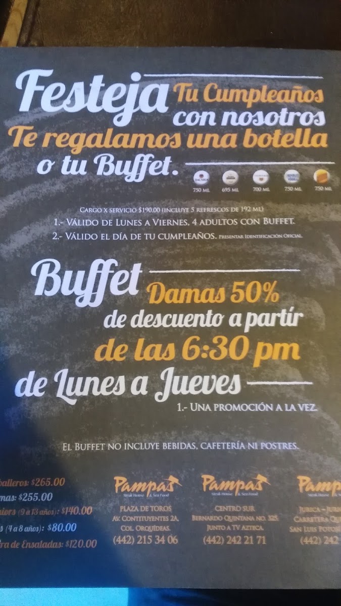 Welcome to Pampas Centro Sur, a delectable destination nestled in Santiago de Queretaro. Known for its vibrant buffet, this restaurant offers a remarkable dining experience where meat enthusiasts can indulge in a variety of options. For just 365 pesos, you can feast on an impressive selection, making it a worthwhile treat.